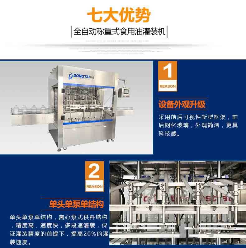 本機適用于對流體5kg-30kg的計重量灌裝。自動完成計數(shù)進瓶、計重量灌裝、輸送出瓶等一系列操作。 特別適用于水劑、食用油,潤滑油的定量灌裝,是食品,醫(yī)藥,化妝品以及精細化工等行業(yè)的包裝機。本機采用可編程控制器(PLC)、高速工控組態(tài)軟件進行實時監(jiān)控的控制,使用調(diào)節(jié)方便。整機按GMP標準要求制作,各管路連接采用快裝方式,拆卸清洗方便,與物料接觸部位及外露部位均采用優(yōu)質(zhì)不銹鋼制造。整機安全、環(huán)保、安全、美觀、能適應(yīng)各種不同環(huán)境工作。