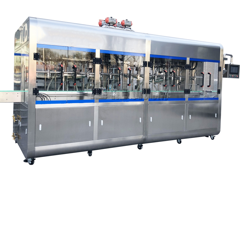 灌裝機(jī)儲(chǔ)油箱部分與灌裝機(jī)連接法蘭保持原位置,避免沖洗,避免雜質(zhì)進(jìn)入;儲(chǔ)油箱容積≥600KG,內(nèi)部設(shè)有阻擋板,避免油品輸入過(guò)程油品外冒,同時(shí)保證灌裝精度;儲(chǔ)油箱位置設(shè)在灌裝機(jī)頂部,自帶可視液位計(jì),頂部箱蓋大包圍設(shè)計(jì)并且可以打開(kāi),具備排氣功能(排出氣泡等);灌裝頭整體上升方式平穩(wěn),不產(chǎn)生震動(dòng),高度及寬度可調(diào)。