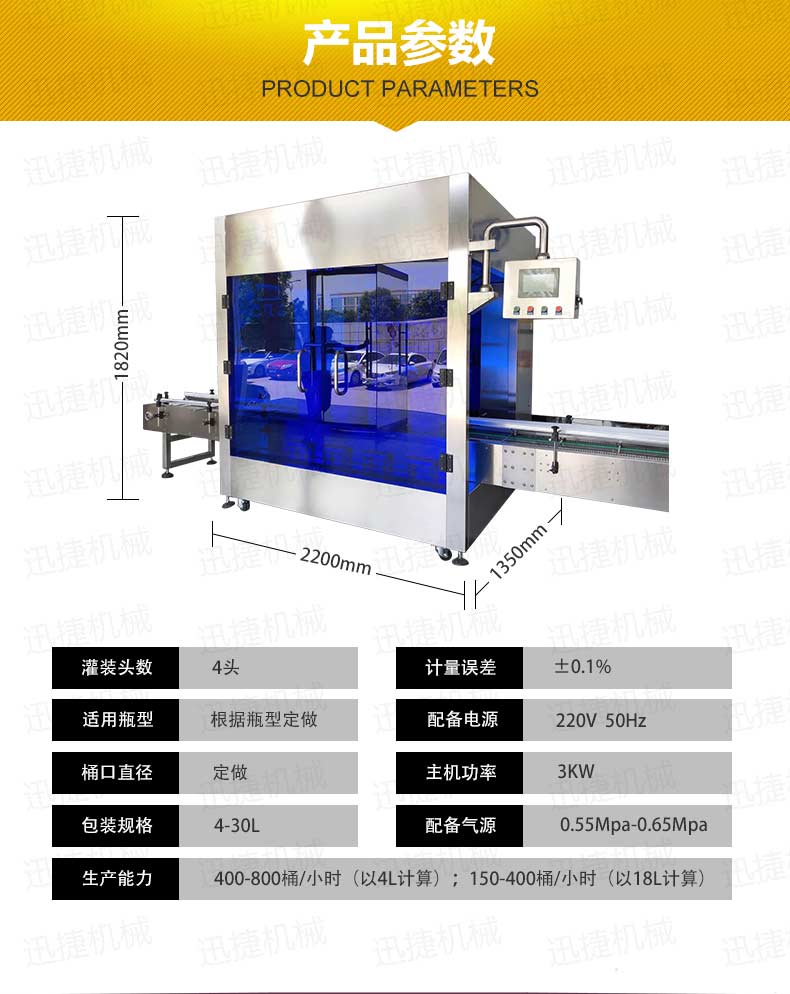 機(jī)油灌裝機(jī)適用于對(duì)4kg-25kg汽車用品類產(chǎn)品:潤滑油、防凍液、車用尿素等液體灌裝。自動(dòng)完成計(jì)數(shù)進(jìn)瓶、計(jì)重量灌裝、輸送出瓶等一系列操作。