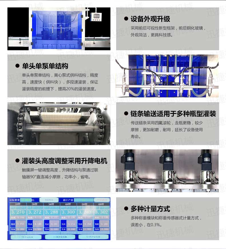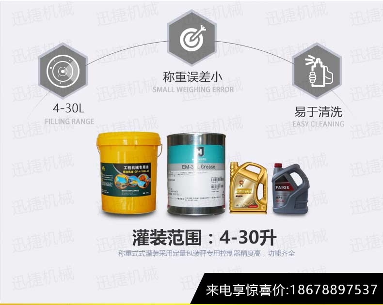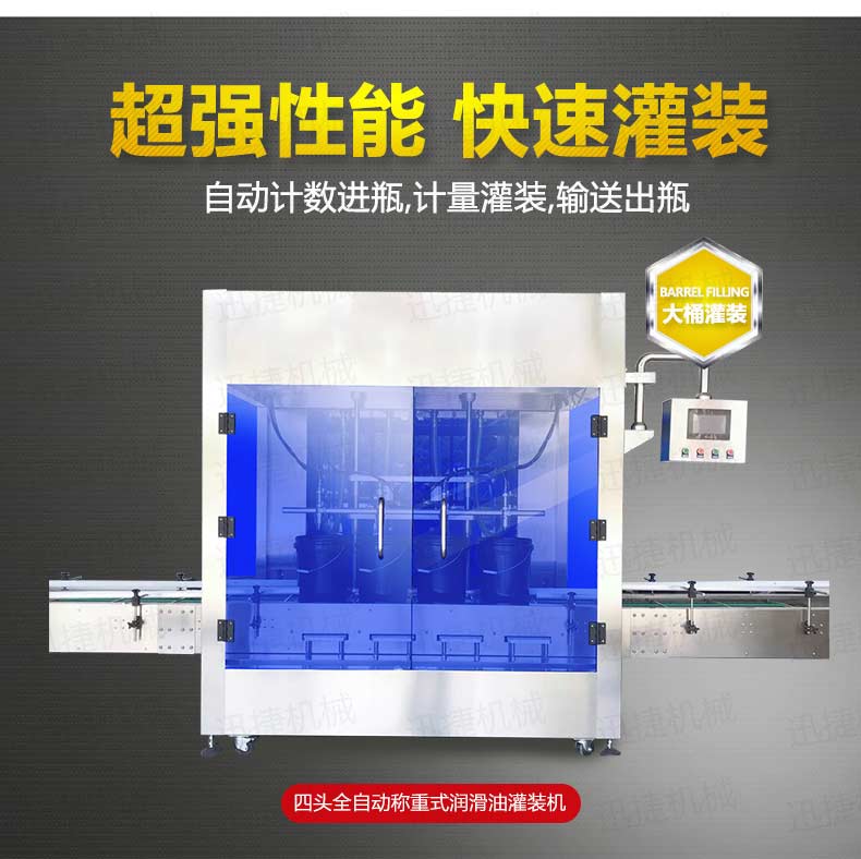 機(jī)油灌裝機(jī)適用于對(duì)4kg-25kg汽車用品類產(chǎn)品:潤滑油、防凍液、車用尿素等液體灌裝。自動(dòng)完成計(jì)數(shù)進(jìn)瓶、計(jì)重量灌裝、輸送出瓶等一系列操作。 特別適用于潤滑油、水劑、食用油的定量灌裝,是食品,醫(yī)藥,化妝品以及精細(xì)化工等行業(yè)的理想灌裝機(jī)。本機(jī)采用可編程控制器(PLC)、高速工控組態(tài)軟件進(jìn)行實(shí)時(shí)監(jiān)控的控制,使用調(diào)節(jié)方便。整機(jī)按GMP標(biāo)準(zhǔn)要求制作,各管路連接采用快裝方式,拆卸清洗方便,與物料接觸部位及外露部位均采用不銹鋼制造。整機(jī)安全、環(huán)保、安全、美觀、能適應(yīng)各種不同環(huán)境工作。