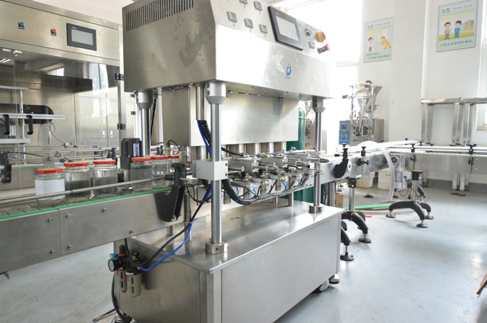 罐頭真空封蓋機用于調(diào)味品醬、水產(chǎn)罐頭、水果罐頭等采用目前環(huán)保的玻璃瓶包裝后對瓶內(nèi)真空度有比較高要求的三旋、四旋蓋的玻璃瓶進(jìn)行封蓋,本機配上真空系統(tǒng)后,能先對玻璃瓶內(nèi)進(jìn)行抽吸真空,然后再進(jìn)行旋蓋封口,以延長瓶內(nèi)容物的保質(zhì)期及增強口感,而且不用加熱以保持物料色澤不變。實行自動進(jìn)瓶、自動封蓋、自動進(jìn)行抽真空。