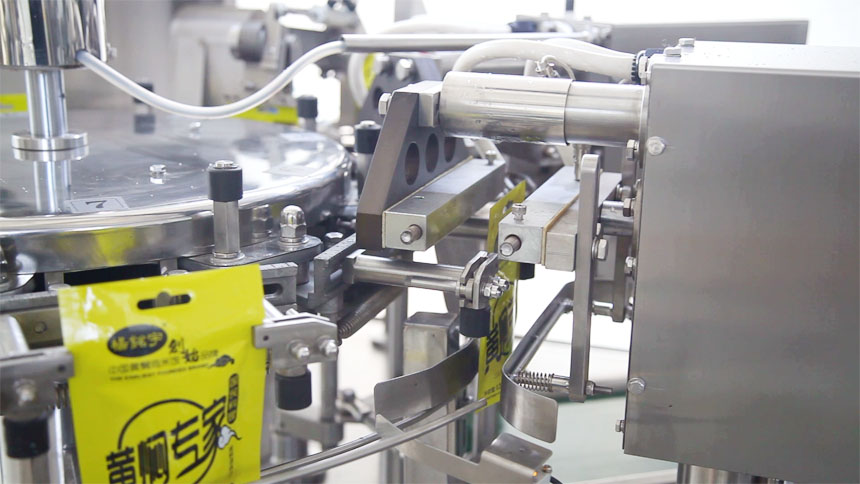 這套全自動給袋式液體醬體包裝機(jī)主要適用于液體/醬體類:洗滌劑、黃酒、醬油、米醋、果汁、飲料、番茄醬、花生醬、果醬、辣椒醬