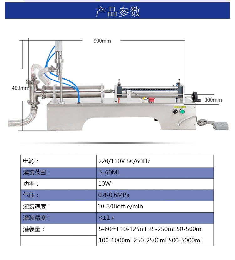 小型半自動(dòng)單頭液體灌裝機(jī)設(shè)備細(xì)節(jié):